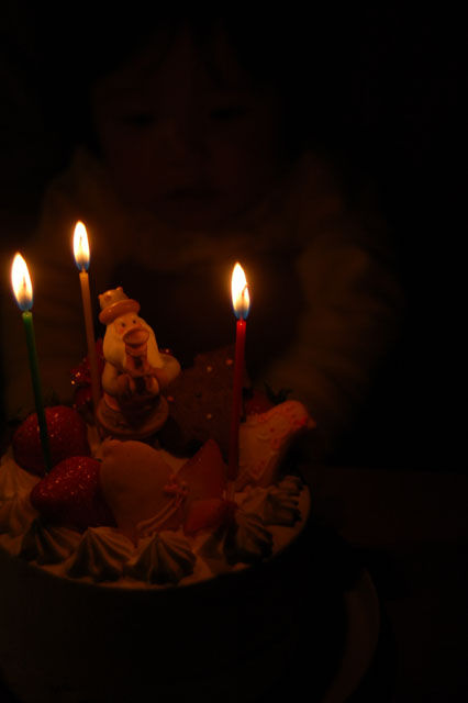 今日はクリスマスイヴということで、仕事を早く切り上げてマンマミーアさんに予約してあったケーキを受け取りに行ってくる。明日まで催されている企画展も盛りだくさんで面白い。今年の我が家はツリーも電飾も一切なしだけれど、珍しく洋食。そして、やっぱり木のフォークってあったほうがいいねということになったので、3月の個展にはしっかりと木のフォークを作ってみることにした。画像はケーキに立つろうそくの炎に不気味に照らし出される興味深々な娘。先日大谷家でこの世のものとは思えない薪ストーブの美しい炎を見てきてから、いかに我が家の安物ストーブであの炎を再現するかに情熱を注いでいる。ガラス部分が狭いこととストーブの大きさが違うので、極上とはいかないまでも今夜はとてもきれいな燃焼。
